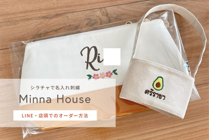 シラチャのロビンソン近くにあるMinna House(ミンナハウス)。バッグやポーチ、カップホルダーやマスクなどを販売しており、それらの商品に名入れ刺繍やワンポイント刺繍をしてくれるお店です。今回はLINEで注文→店頭で受け取りの流れで商品をオーダーしてみたのでその内容を紹介します。
